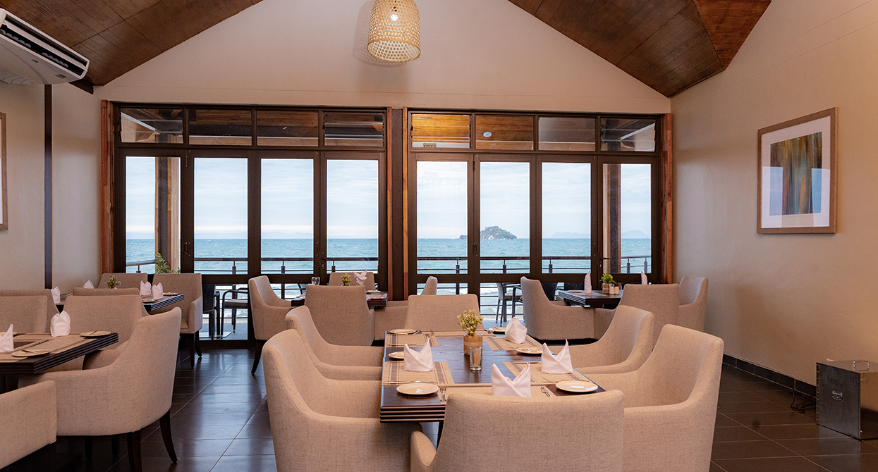 A magnificent upmarket restaurant offering endless views and opens out to a wide deck, providing a breezy dining experience.
